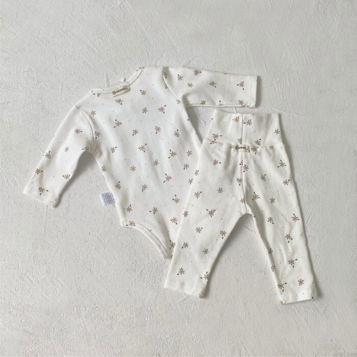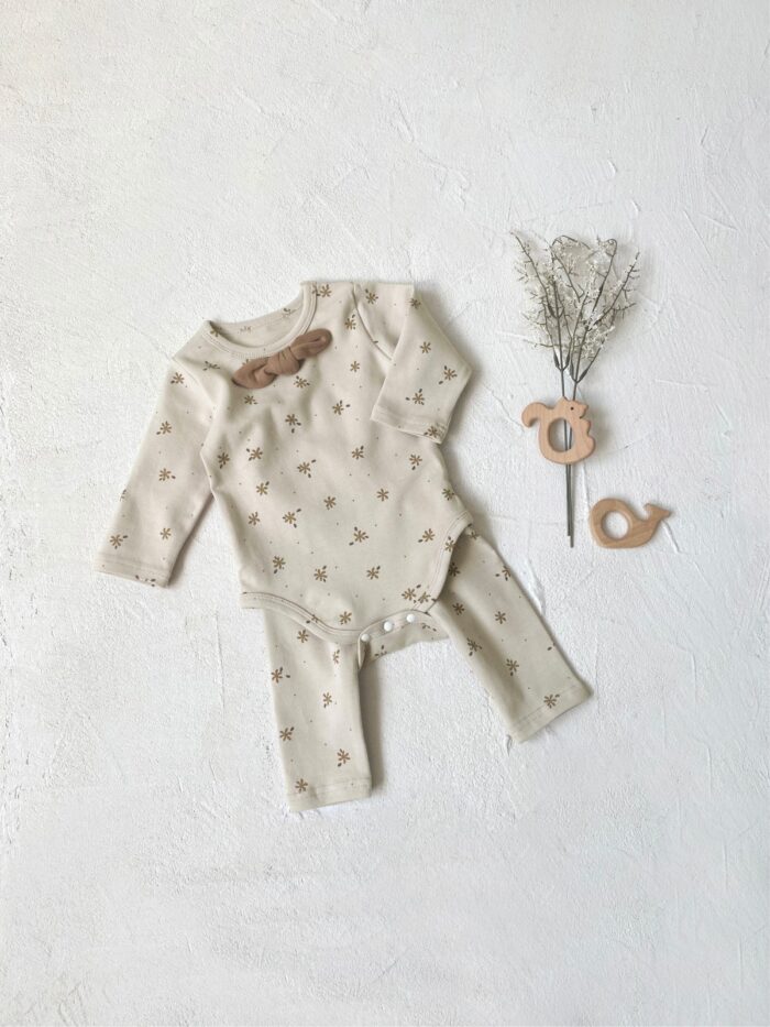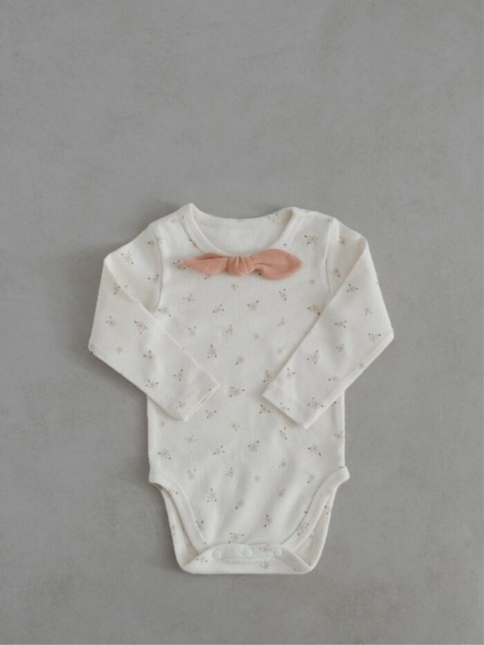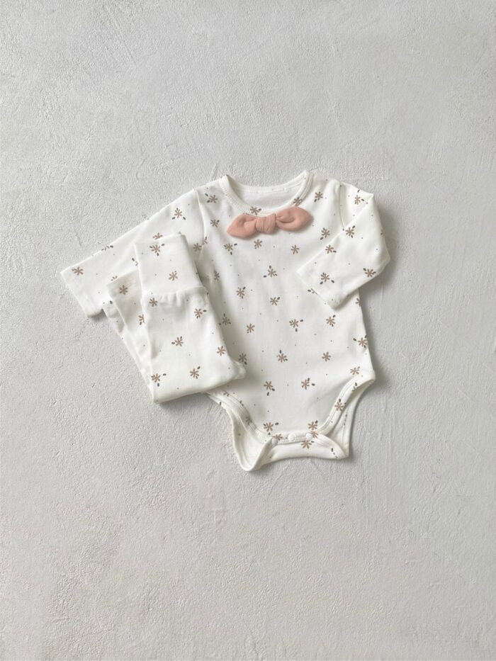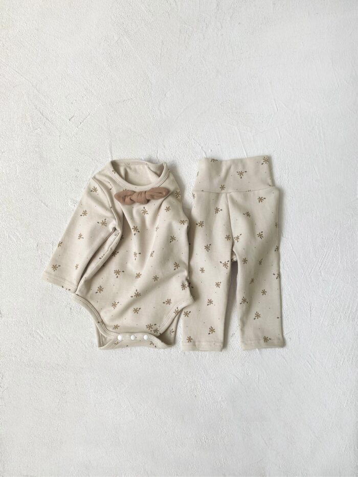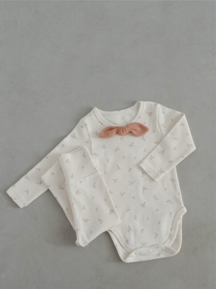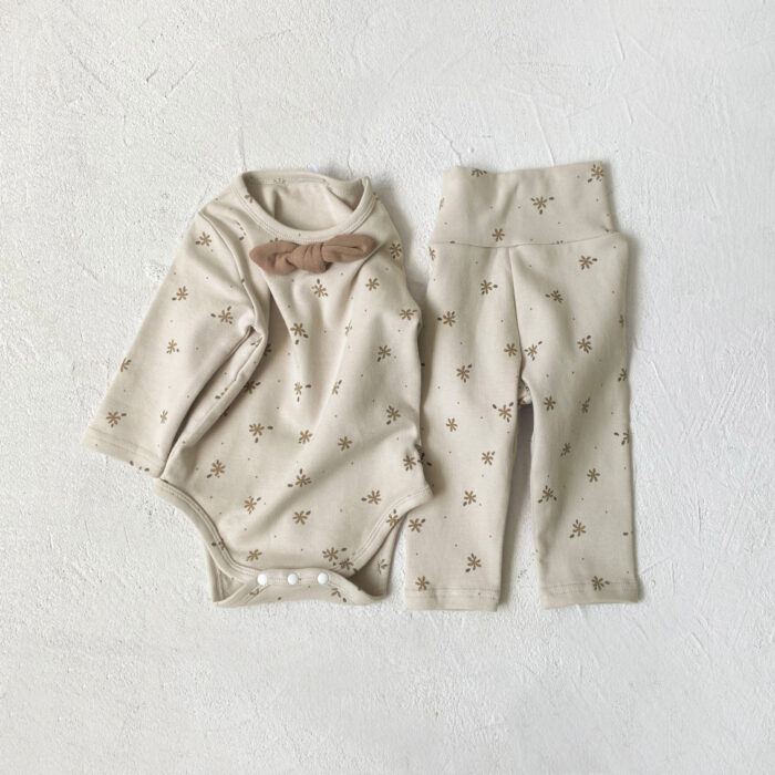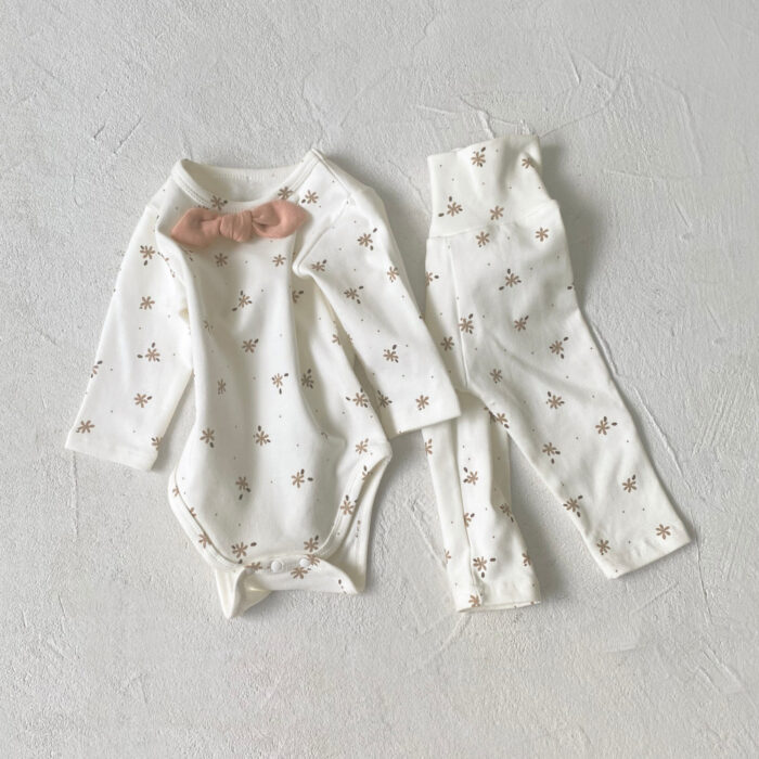 韓版 66~90 – 碎花蝴蝶結包屁衣+高腰褲 / 二色
