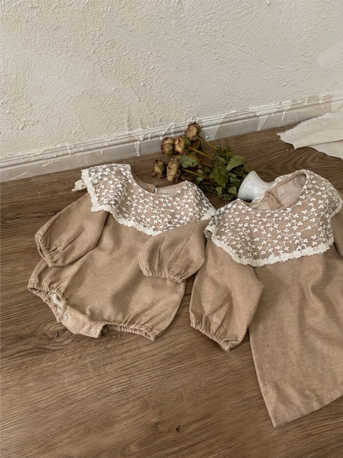 韓版 66~90 – 蕾絲打領片包屁衣