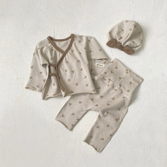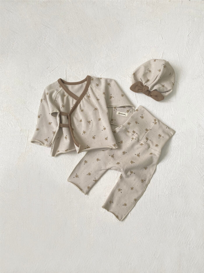 韓版 66~90 – 蝴蝶衣+高腰褲+帽子(三件一組) / 二色