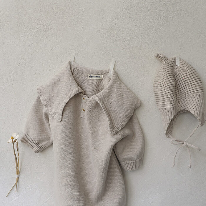 韓版 66~90 – 針織包屁衣+帽子 / 二色
