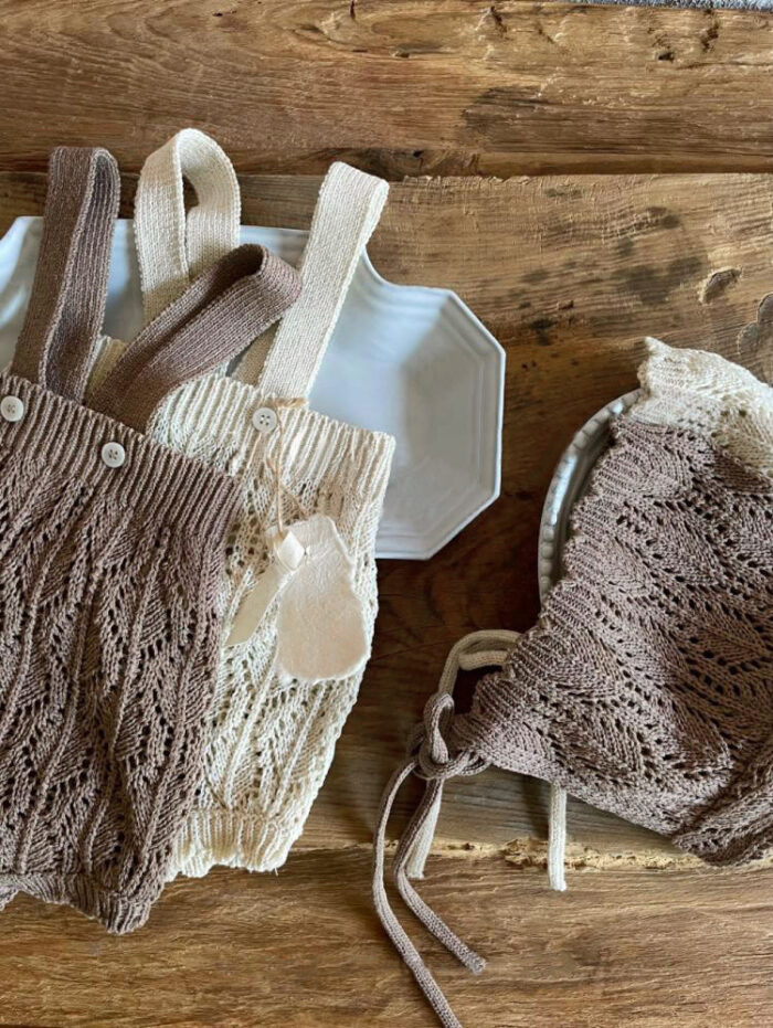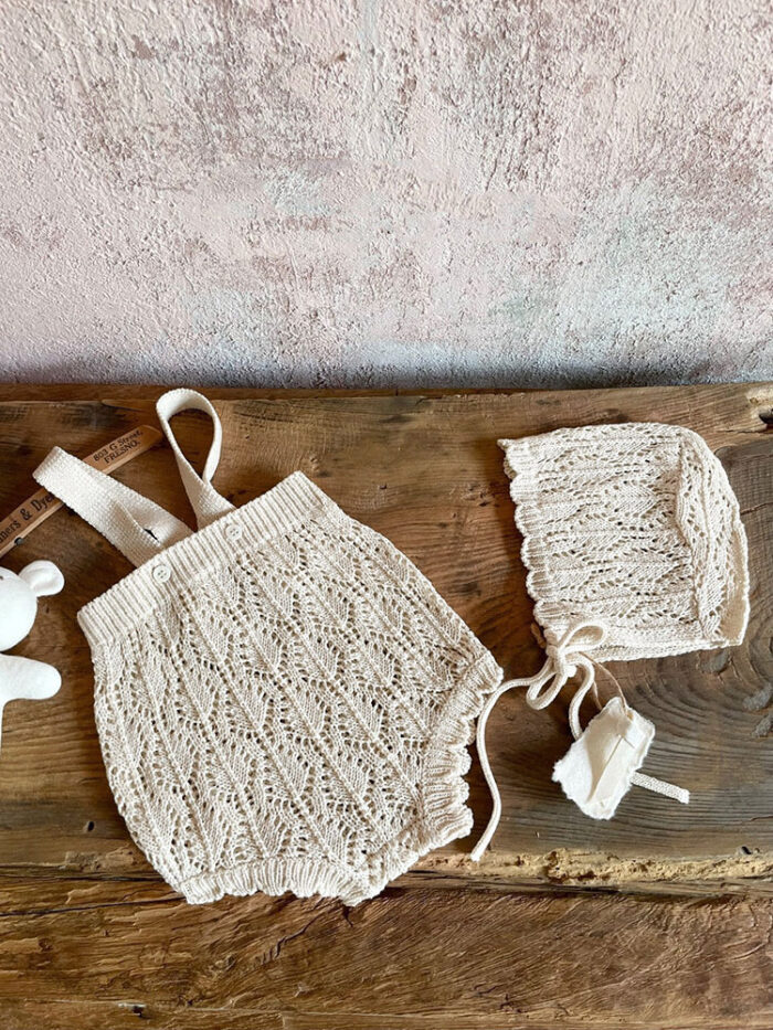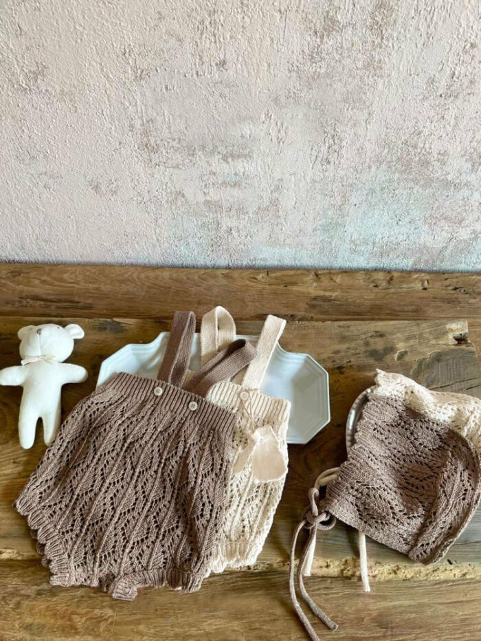 韓版 66~90 – 針織吊帶褲+帽子 / 二色