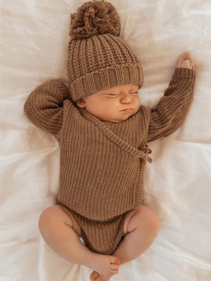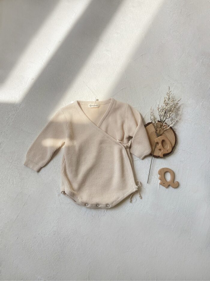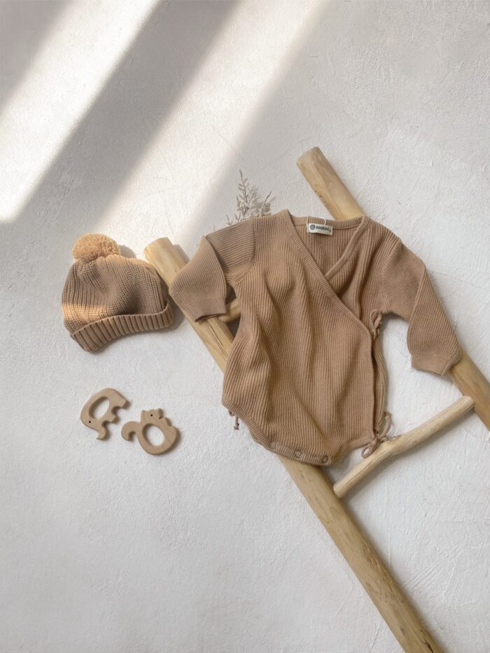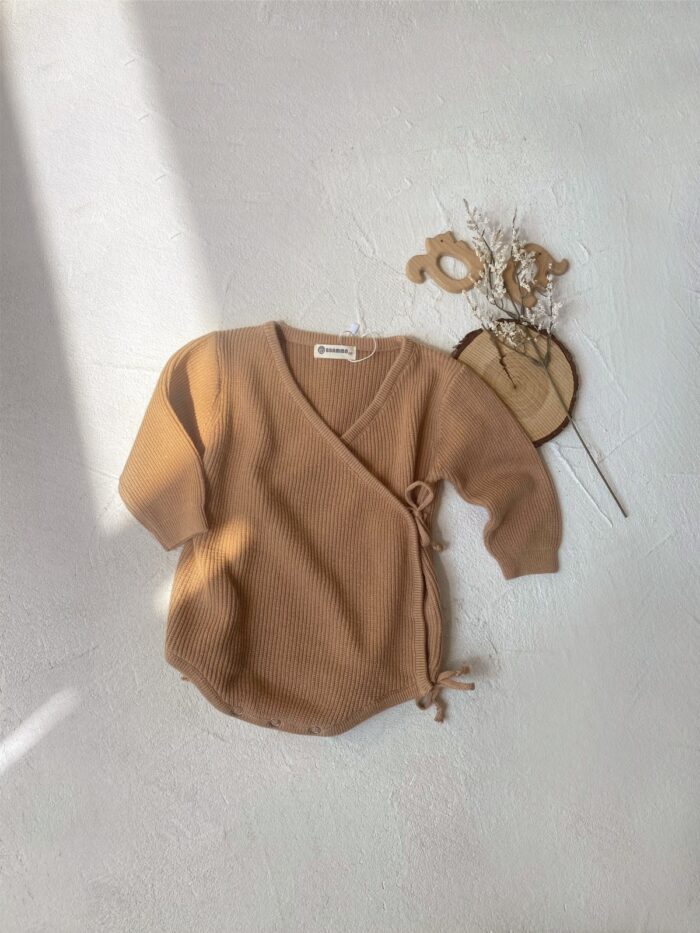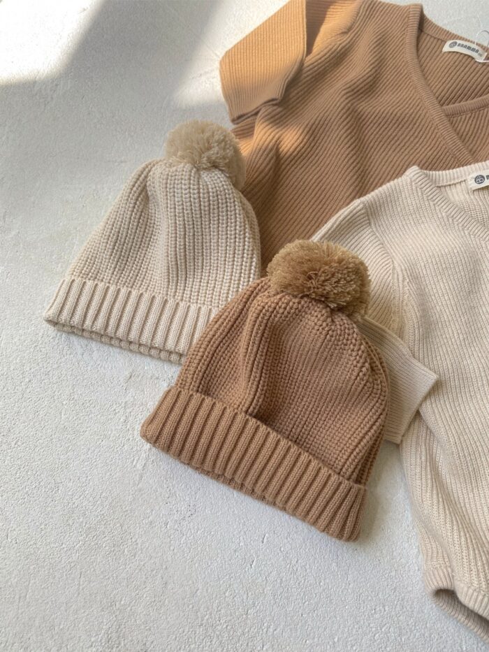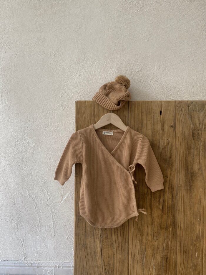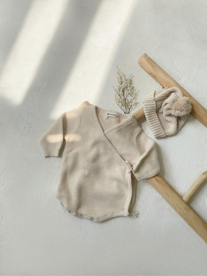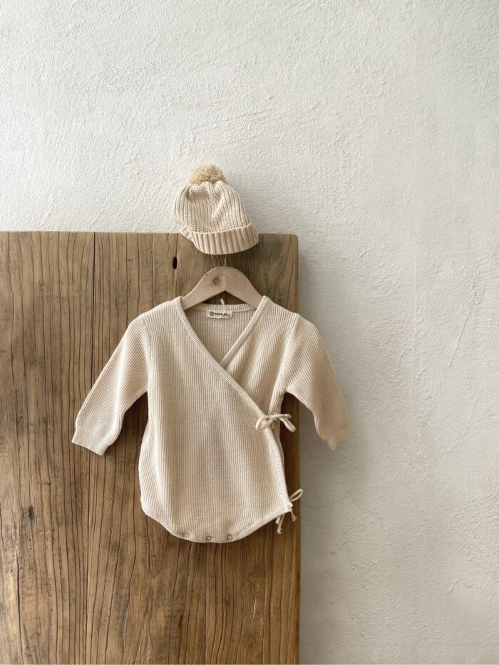 韓版 66~90 – 針織蝴蝶包屁衣+帽子 / 二色