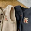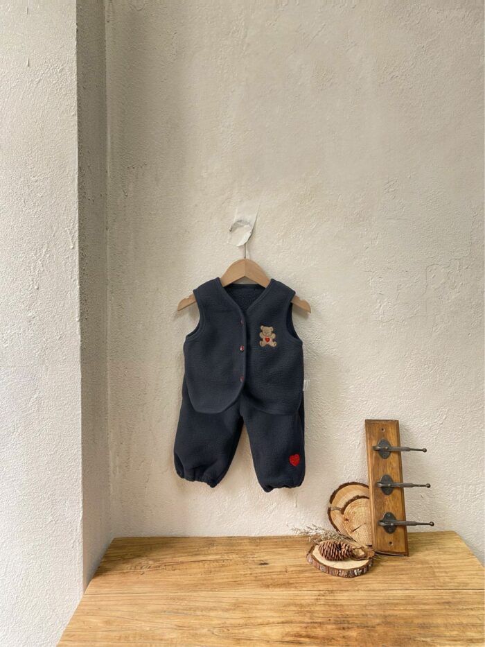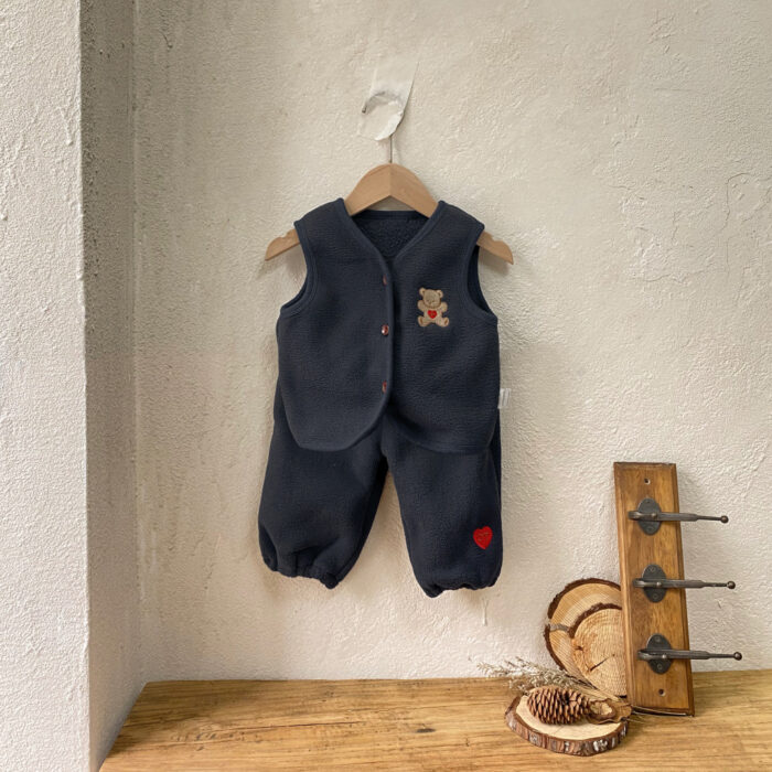 韓版 73~100 – 熊熊刺繡雙面絨背心+褲子 / 二色