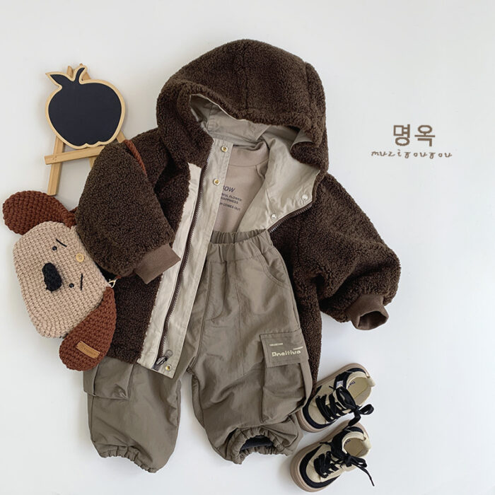 韓版80~130 – 加絨保暖半拉鍊上衣 / 二色