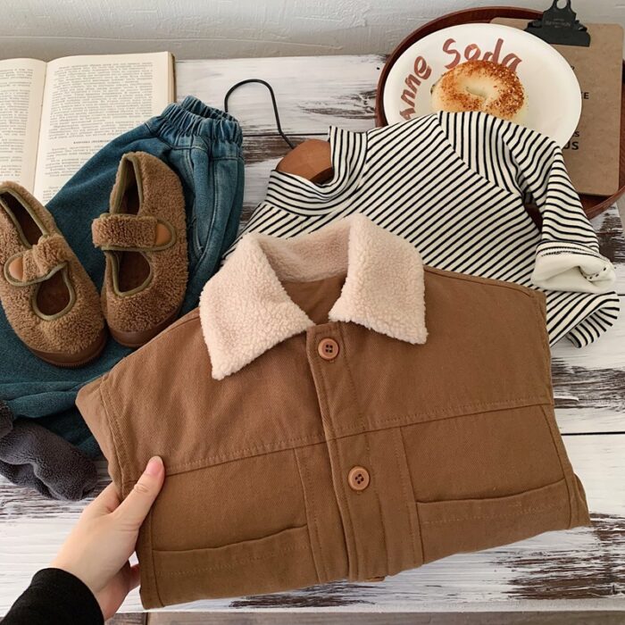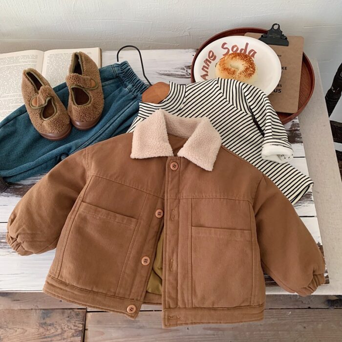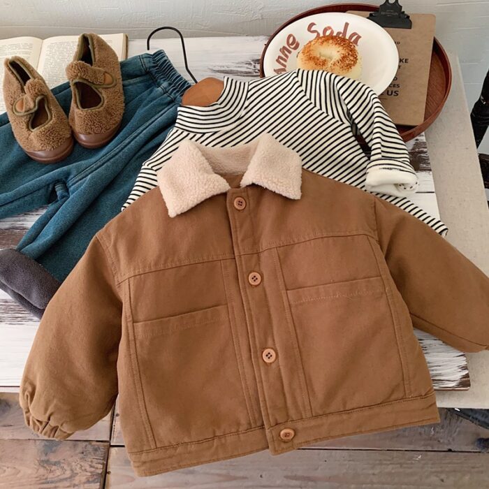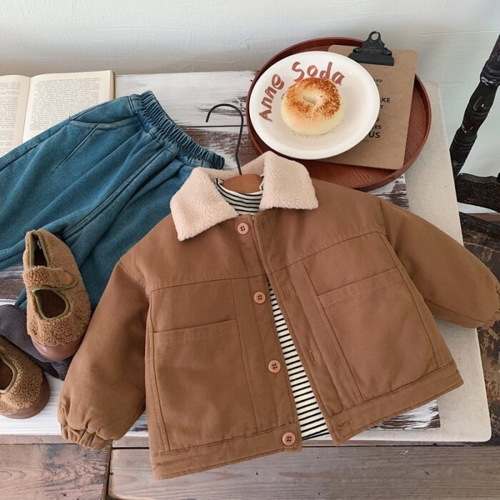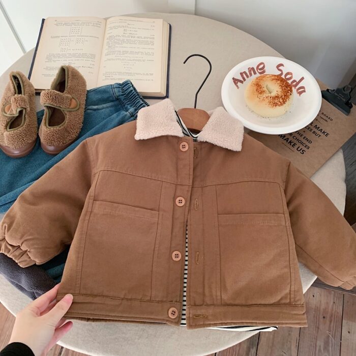 韓版80~130 – 夾棉毛毛翻領外套