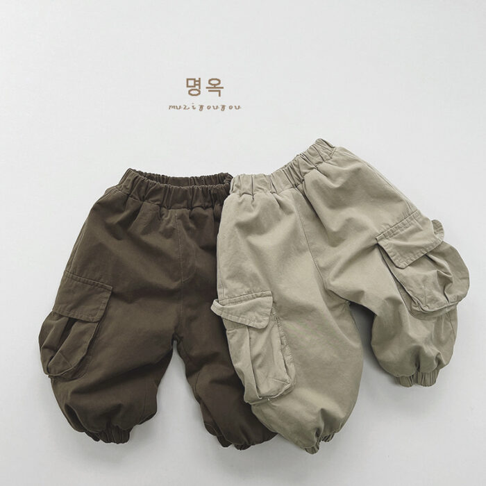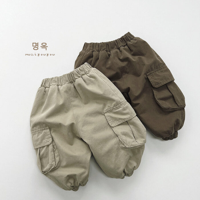 韓版80~130 – 工裝加絨束口褲 / 二色