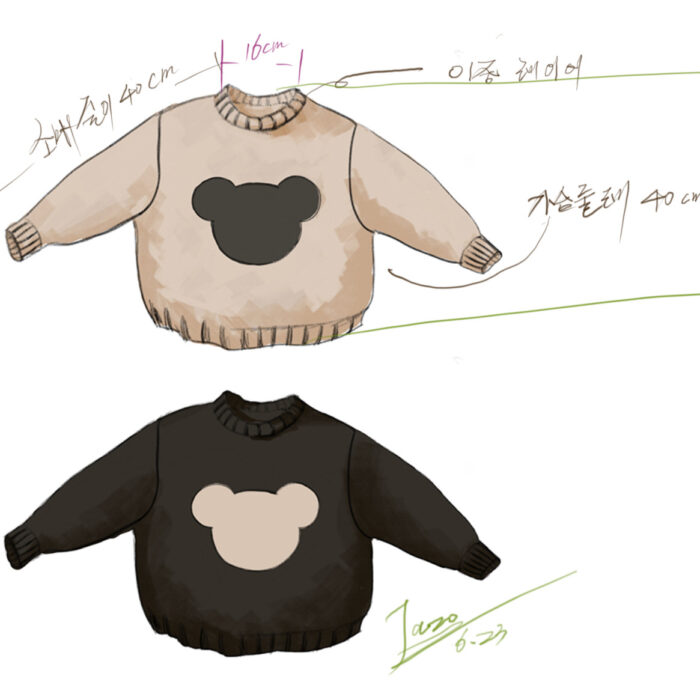 韓版80~130 – 森林系熊圓領針織上衣 / 二色