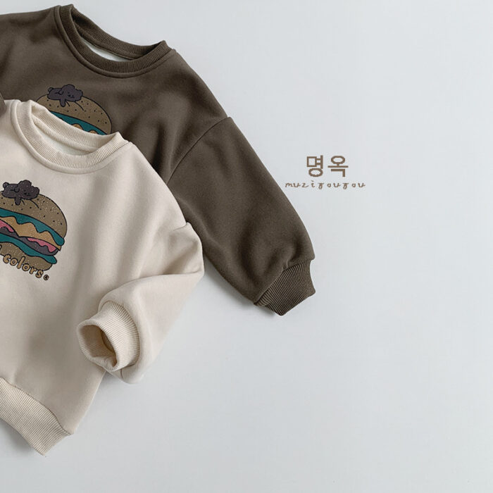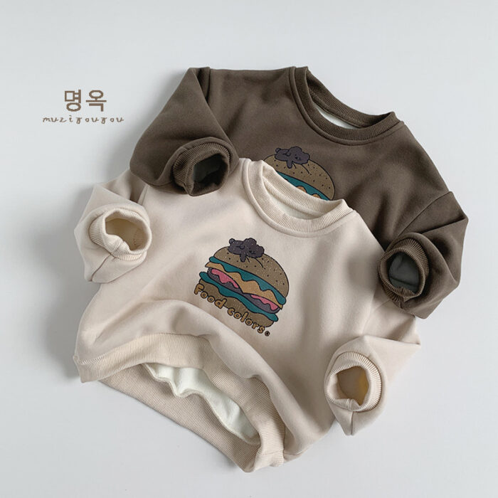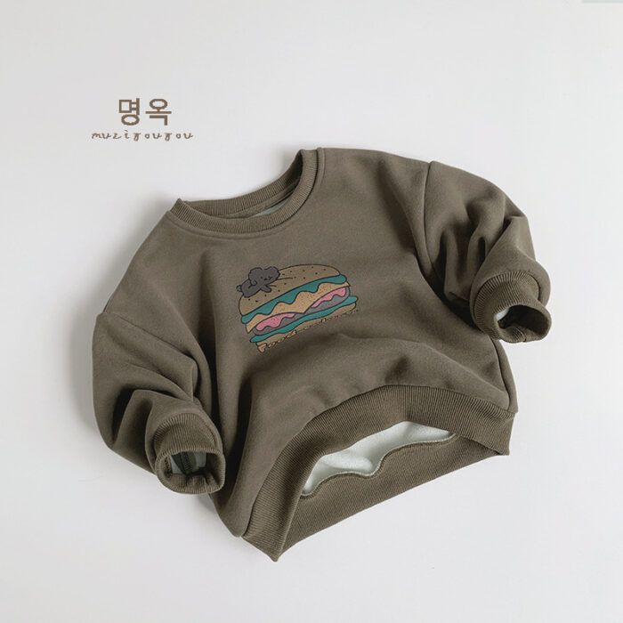 韓版80~130 – 漢堡加絨上衣 / 二色