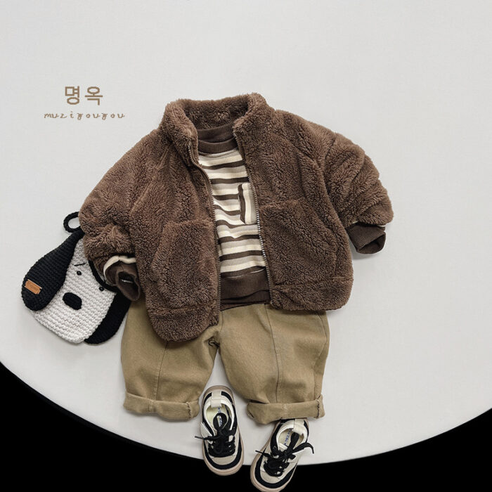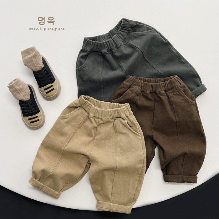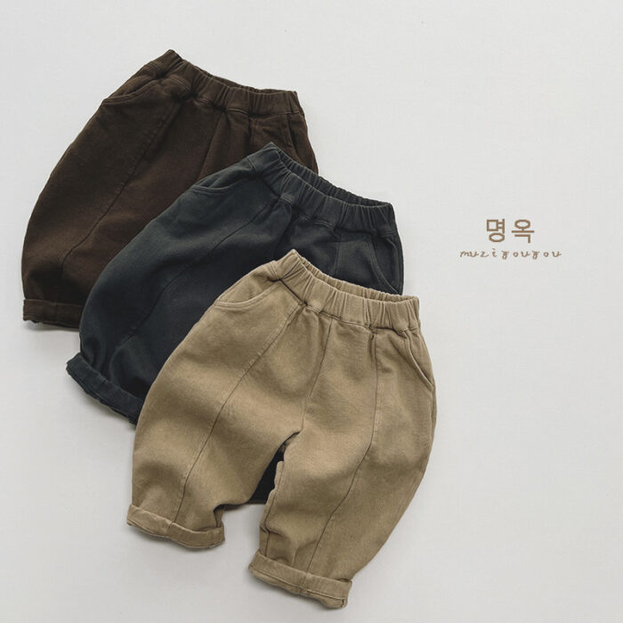 韓版80~130 – 簡約百搭抓絨長褲 / 三色