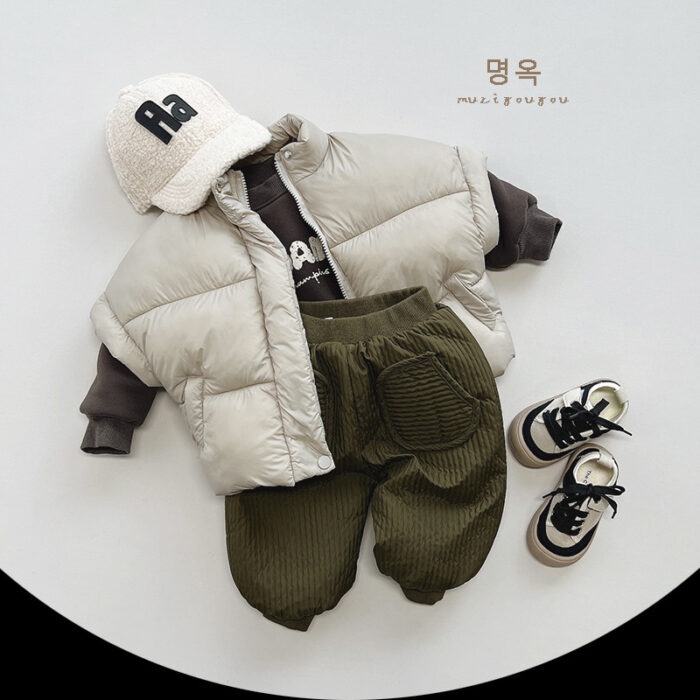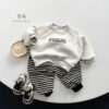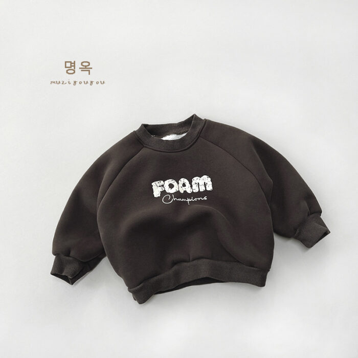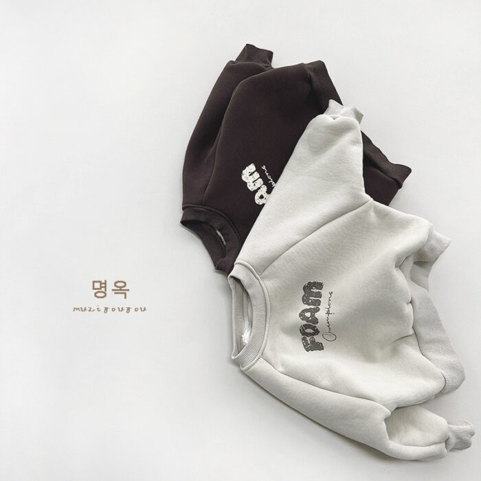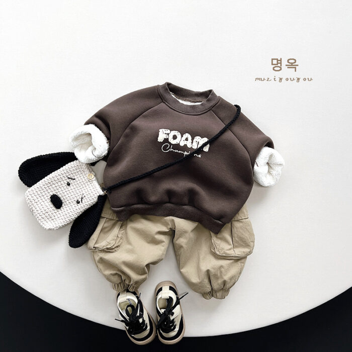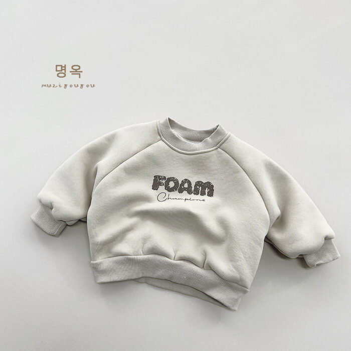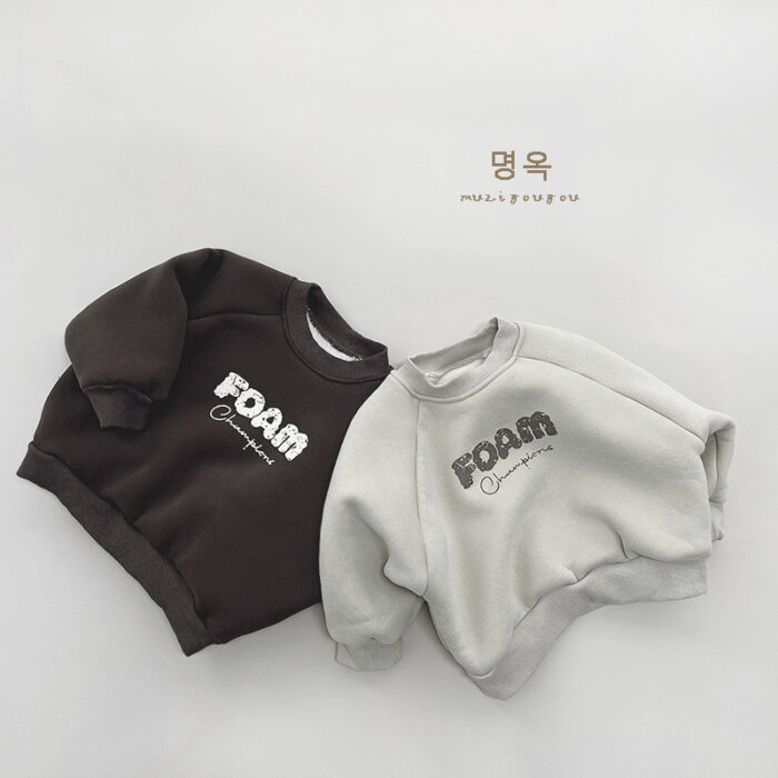 韓版80~130 – 英文印花加絨上衣 / 二色