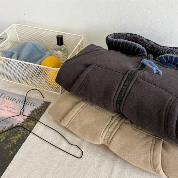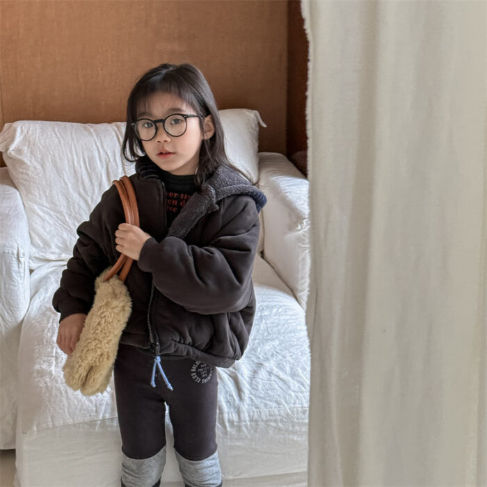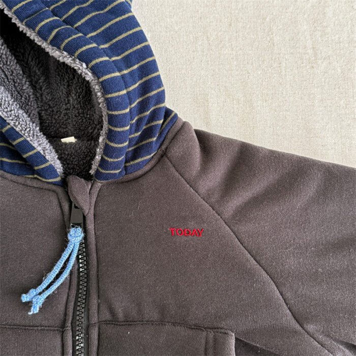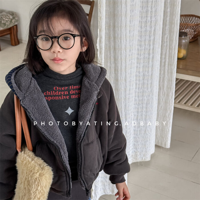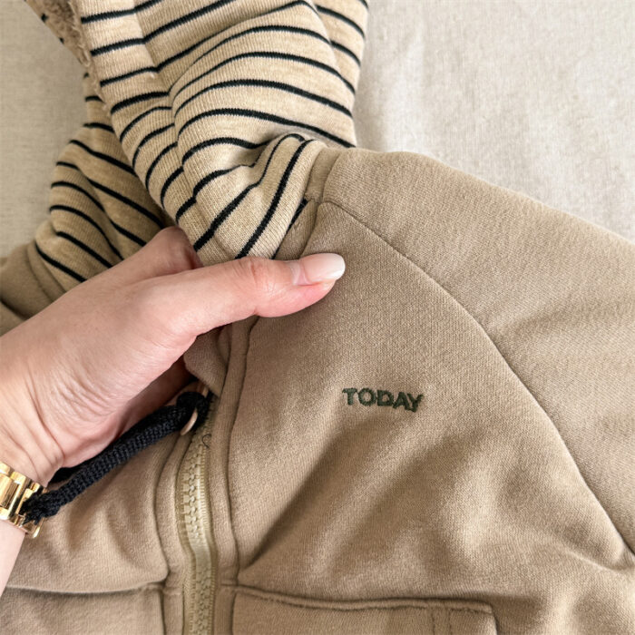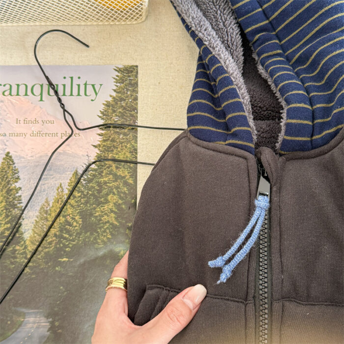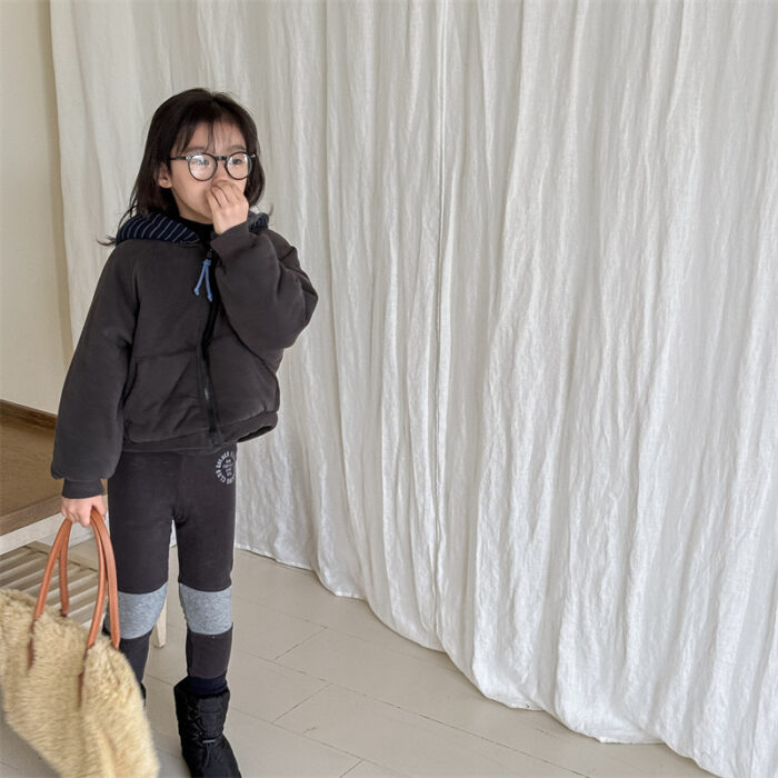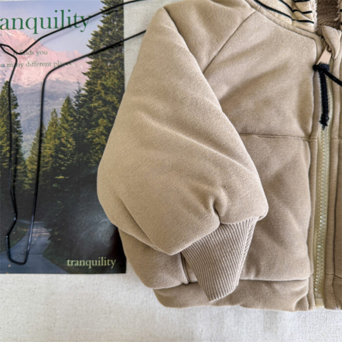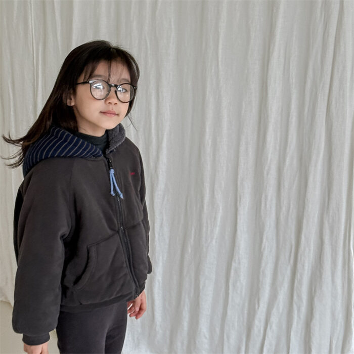 韓版80~130cm – 加絨橫條連帽外套 / 二色