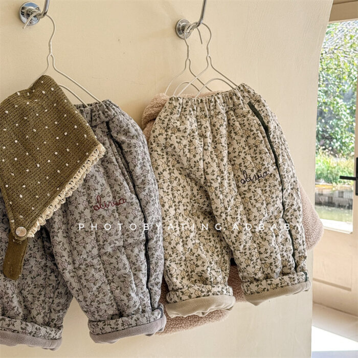 韓版80~130cm – 碎花夾棉加絨褲 / 二色