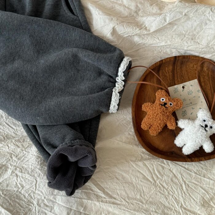 韓版90~140 - 加絨蕾絲棉褲 數量