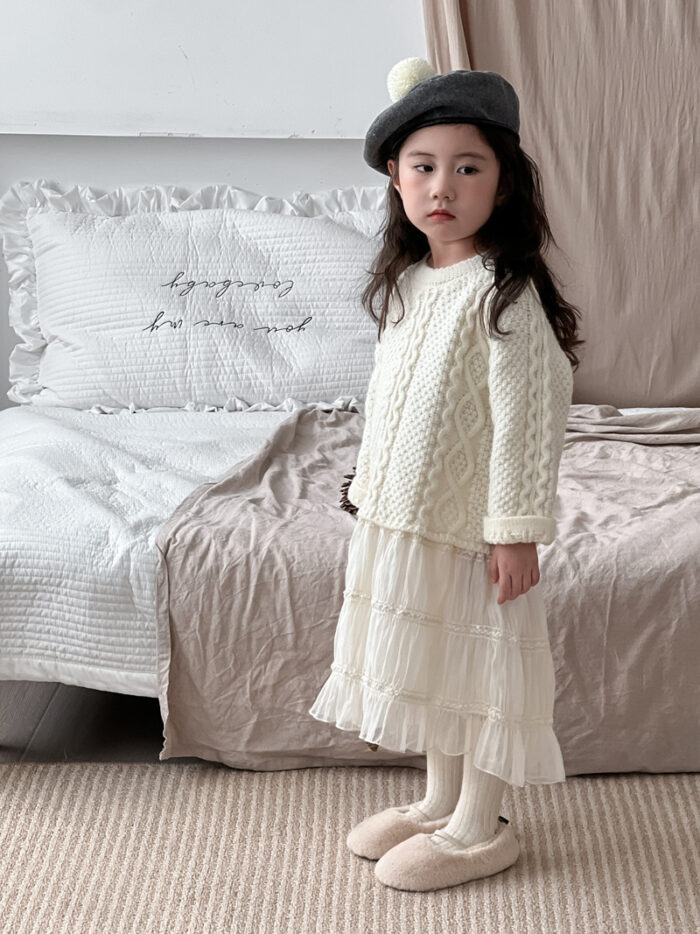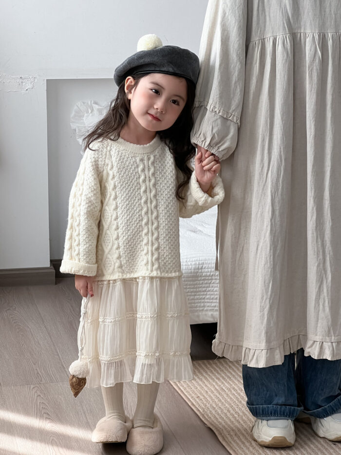 韓版90~140 – 毛衣拼接網紗公主洋裝
