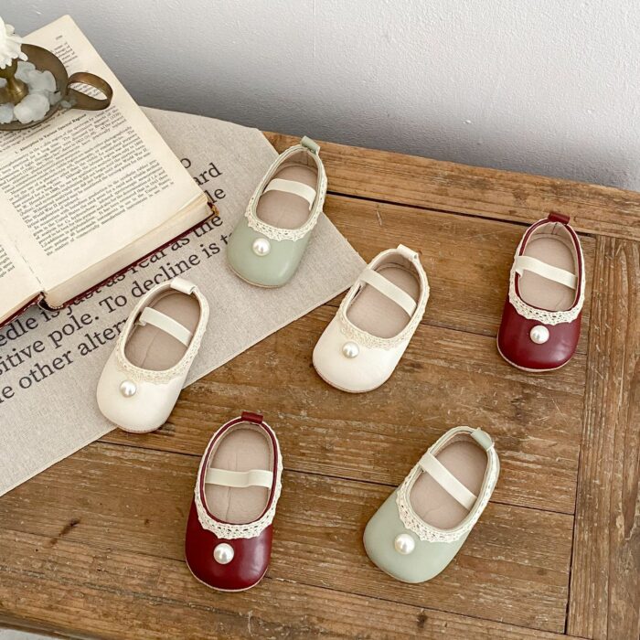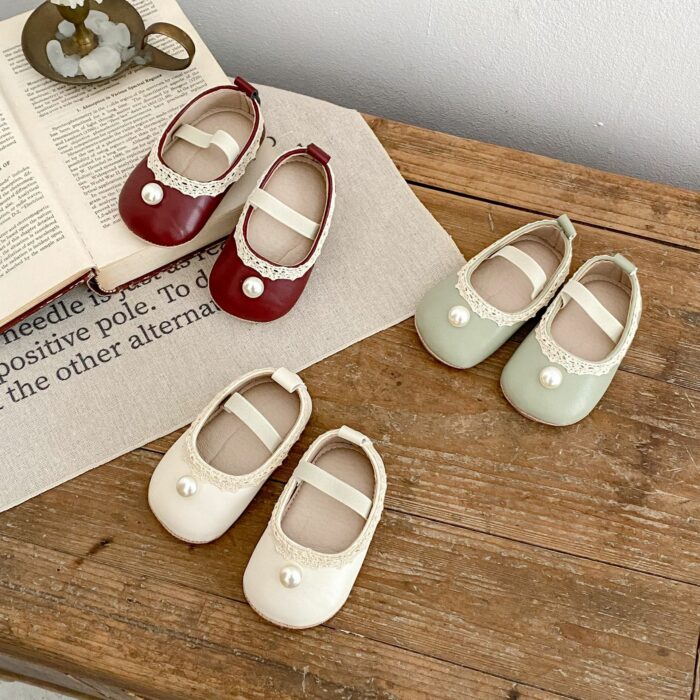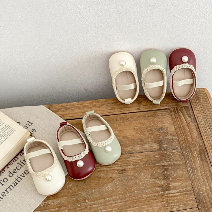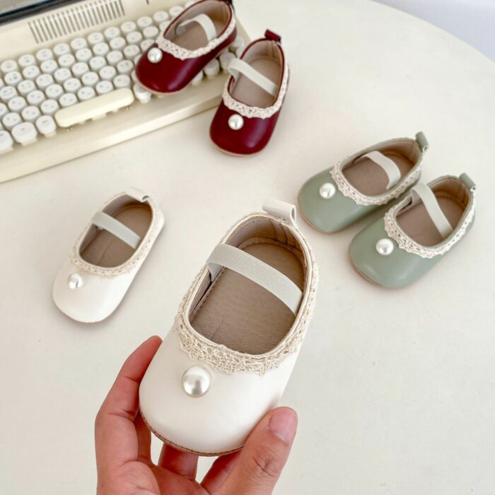 11~13cm – 蕾絲珍珠公主鞋 學布鞋 / 三色