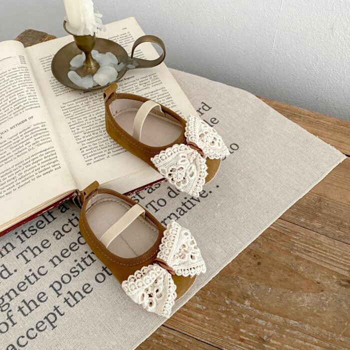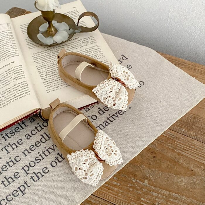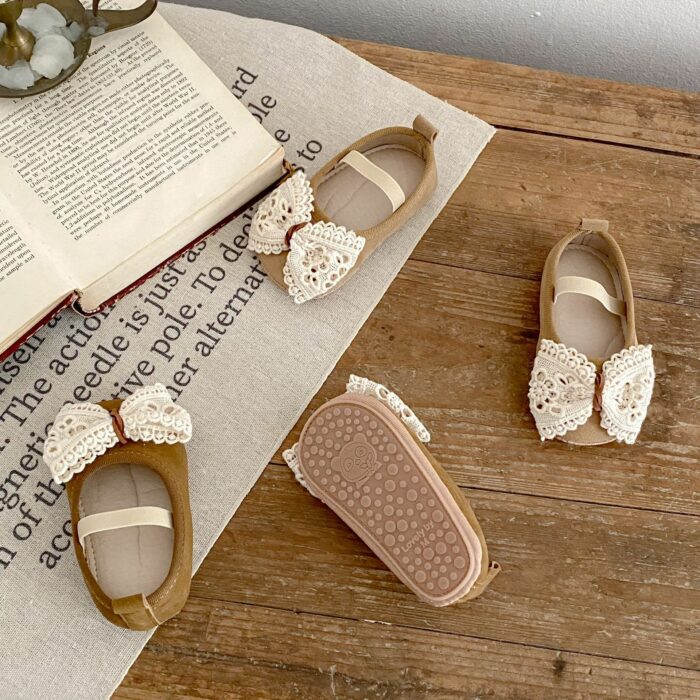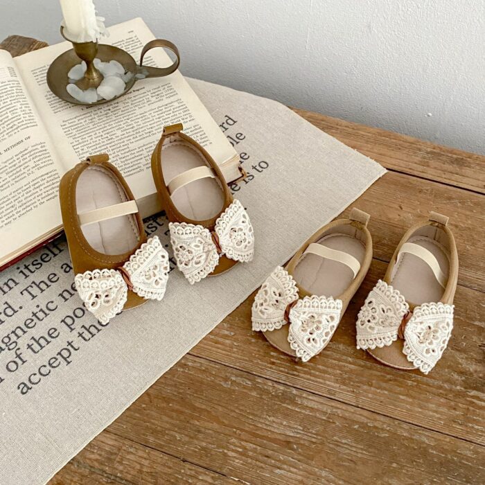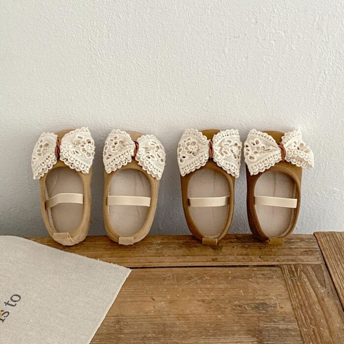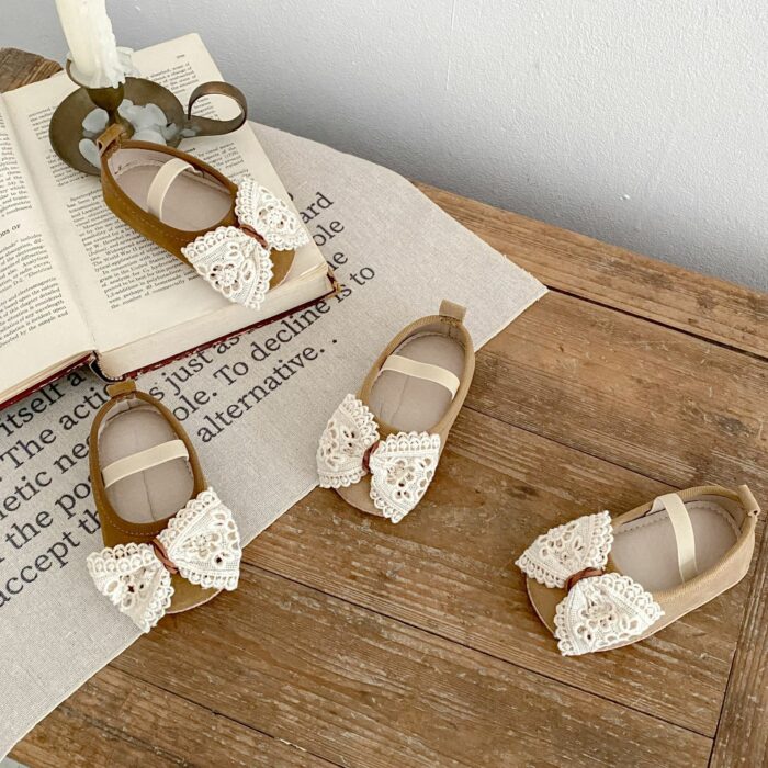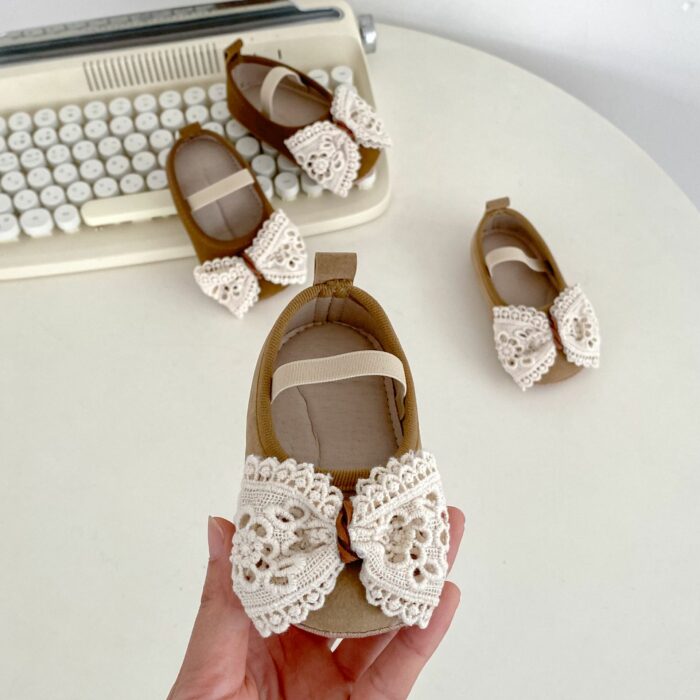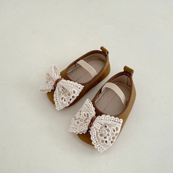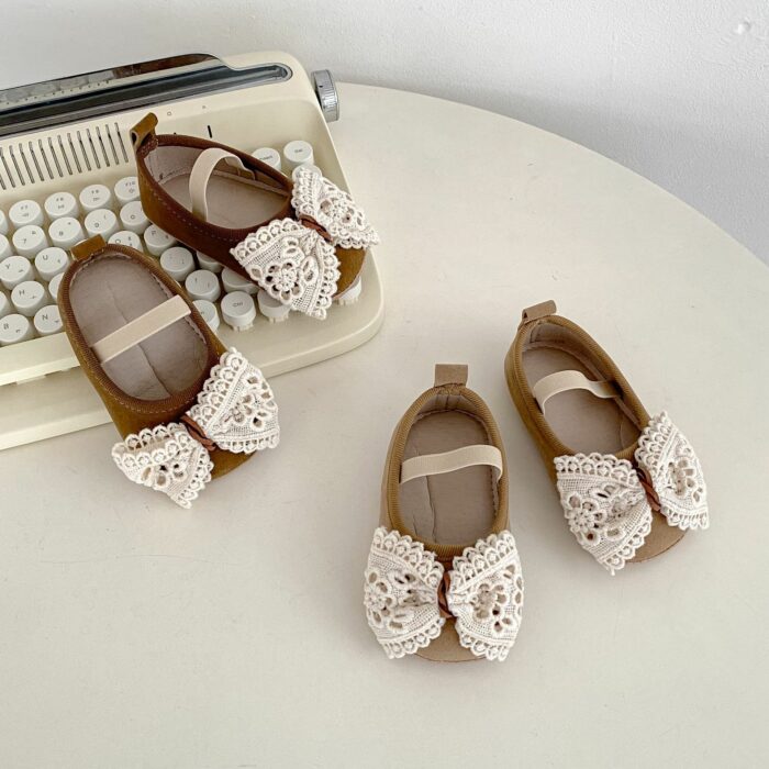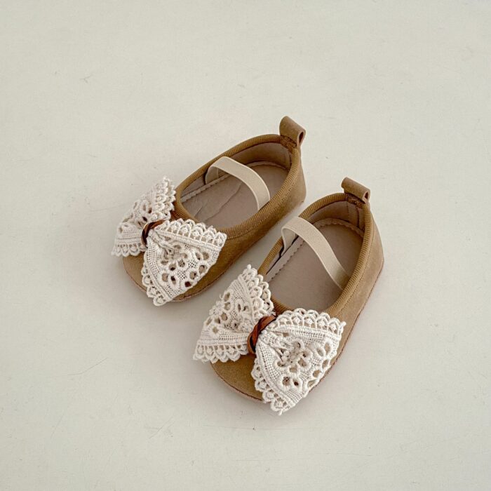 11~13cm – 超可愛的蕾絲蝴蝶結學布鞋 / 二色