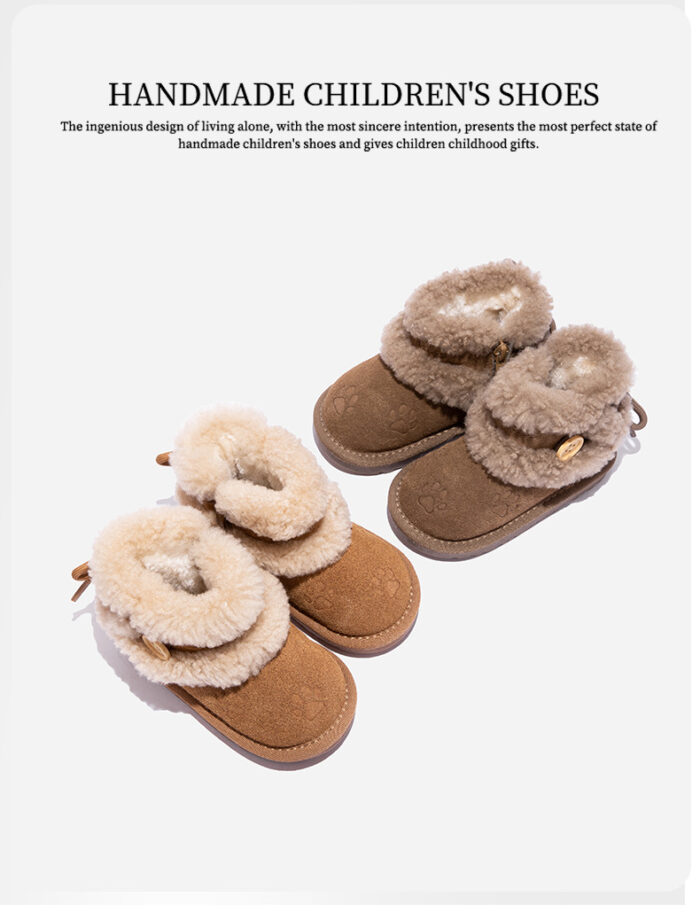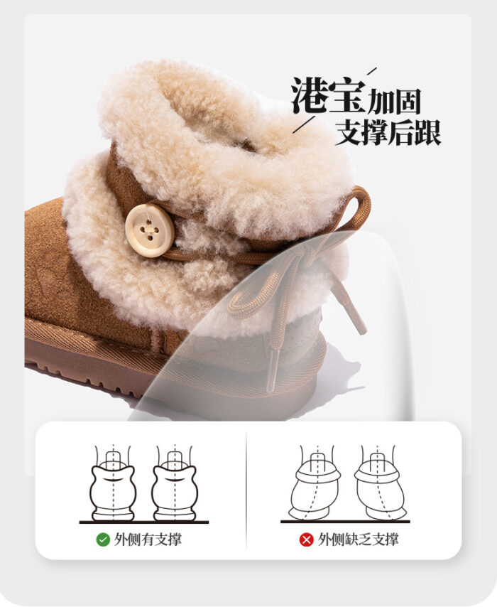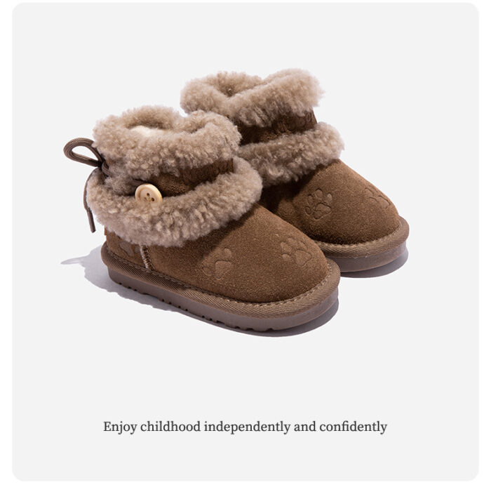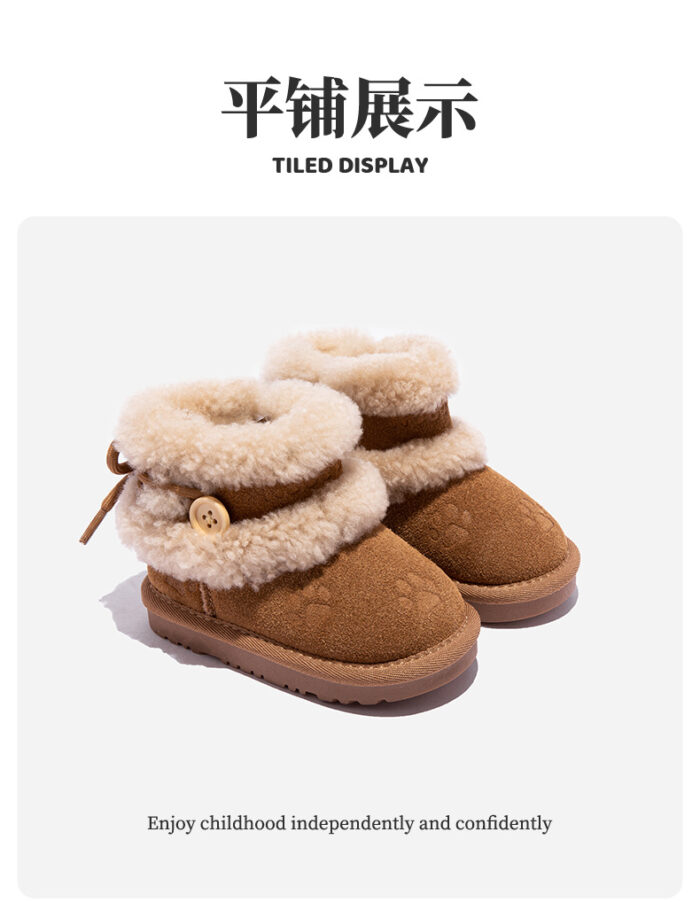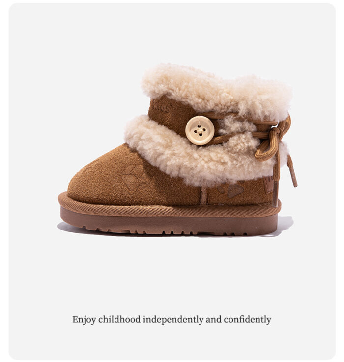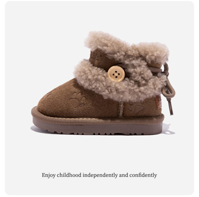 13~17.2cm – 雪地加絨加厚鈕扣真皮羊毛棉靴 / 二色