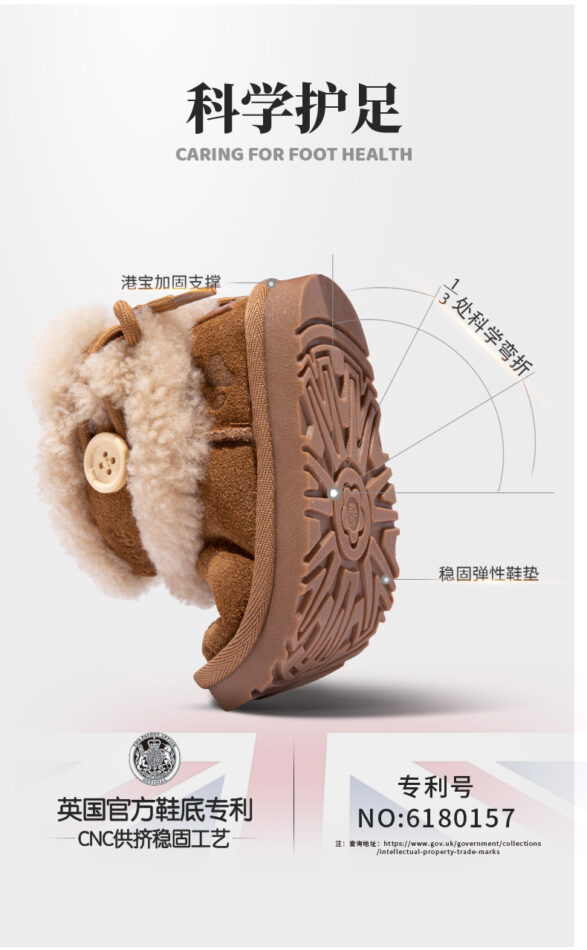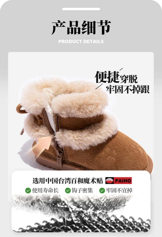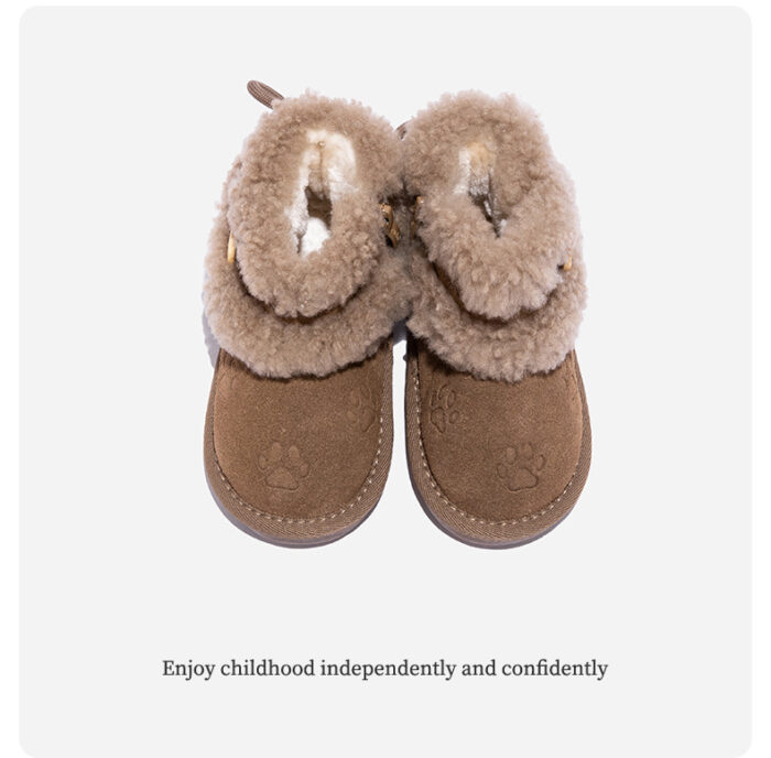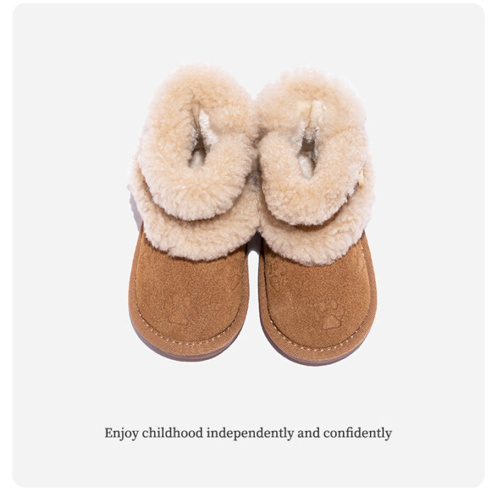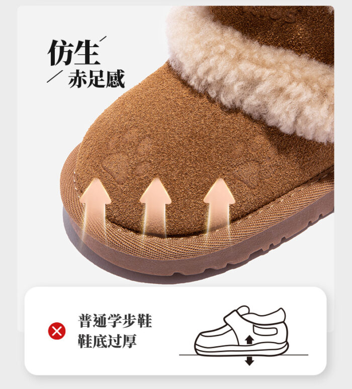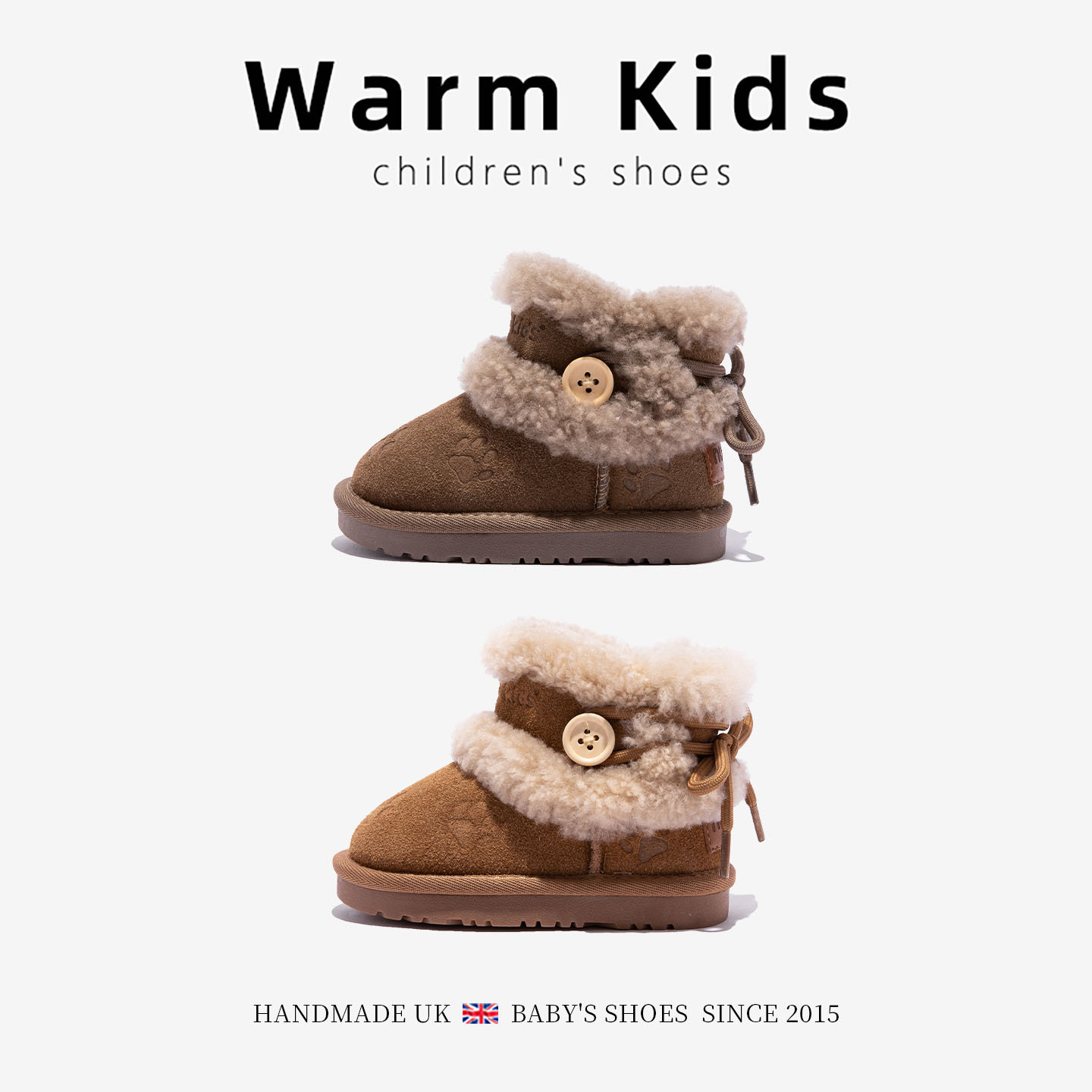 13~17.2cm – 雪地加絨加厚鈕扣真皮羊毛棉靴 / 二色